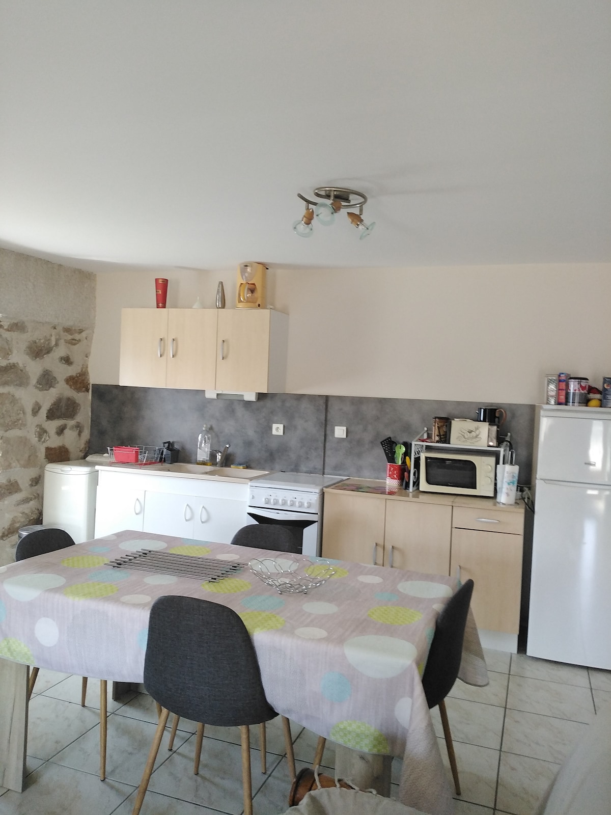Este estudio ( para no fumadores) se encuentra en nuestra gran casa de piedra, en una aldea tranquila. acceso directo e independiente desde nuestro aparcamiento privado, Cama de 160, cocina totalmente equipada, ducha de 90 x 90. Una sola habitación grande de 40 m2 que se completa con el baño y la terraza. Ideal para dos (se aceptan bebés si traes su cuna). Se proporcionan sábanas y toallas. Garaje posible para motos y bicicletas Ofrecido: lo necesario para preparar un desayuno: té/café/mantequilla/azúcar/mermelada casera