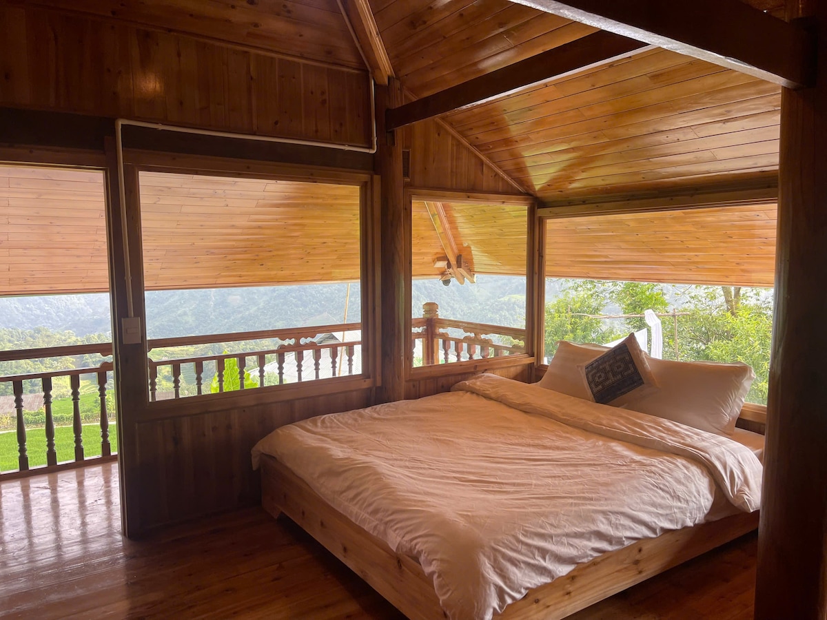 Terrace View Haven te invita a despertar con las montañas. Esta acogedora habitación cuenta con una gran ventana de cristal y un balcón privado con vistas a las impresionantes terrazas de arroz. Ya sea tomando el té al amanecer o relajándote con la brisa de la tarde, este refugio ofrece un asiento en primera fila para contemplar la obra maestra de la naturaleza en Sapa.