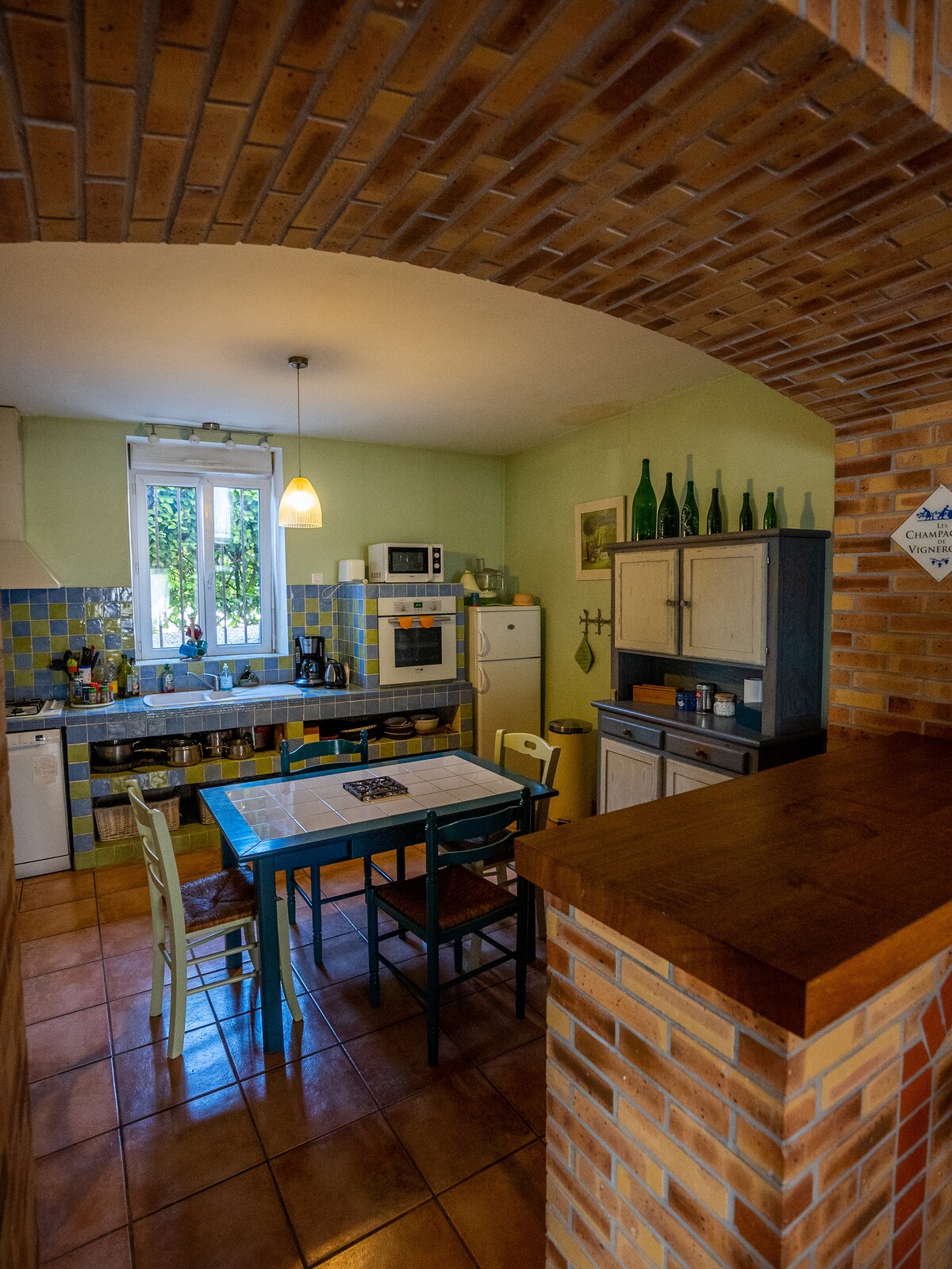 Casa unifamiliar del siglo XIX situada a medio camino entre Reims y Epernay (10/15mn) en el corazón del parque regional de la montaña Reims. Las salas de estar (cocina, sala de estar) están en la planta baja y los 3 dormitorios en la planta. Acceso wifi, camas hechas a la llegada e incluidas en la tarifa para 4 camas (2 individuales y 2 dobles), toallas de té. 1 baño, así como un aseo en cada nivel y una hermosa terraza en la parte posterior de la casa con vistas al campo. Viñedos de champán a 4 km