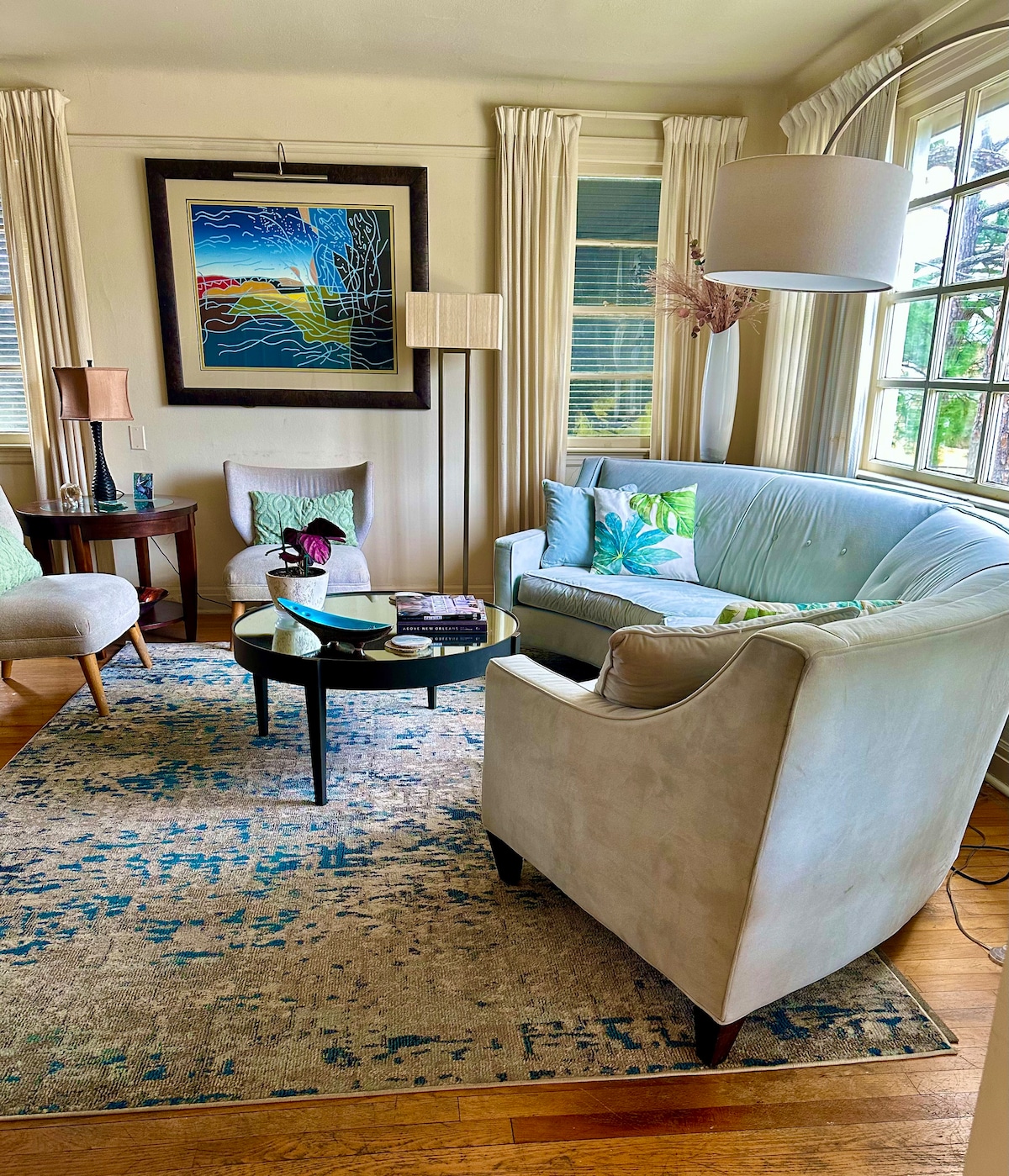 Todos son bienvenidos a disfrutar de nuestra Casa de Arte, llena de luz, color y arte, a solo dos manzanas del hermoso Barrio Francés a través del ferry de Algiers. Una vez que estés acurrucado cómodamente en el segundo barrio más antiguo de Nueva Orleans, el encantador Algiers Point, te deleitarás con las obras de arte originales creadas por tu artista anfitrión y con la arquitectura histórica, mientras paseas por nuestras pintorescas calles y disfrutas de restaurantes y bares a pocos pasos de la Art House y a lo largo del sendero a pie por el poderoso río Misisipi.