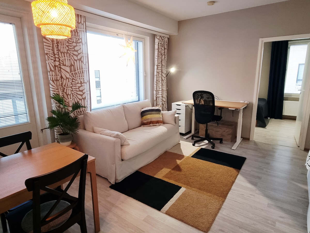 Bienvenido a una acogedora y moderna casa adosada de dos habitaciones en el tranquilo distrito de Pöykkölä de Rovaniemi. Esta elegante residencia, terminada en 2019, ofrece un alojamiento cómodo y perfecto para los turistas que buscan un refugio del bullicio de la ciudad en medio de bosques pintorescos. Relájate en tu sauna privada después de un día de actividades. Una cocina bien equipada y cómodas salas de estar hacen que tu estancia sea perfecta. Reserva ahora y experimenta la encantadora belleza de Laponia en el corazón de Pöykkölä.