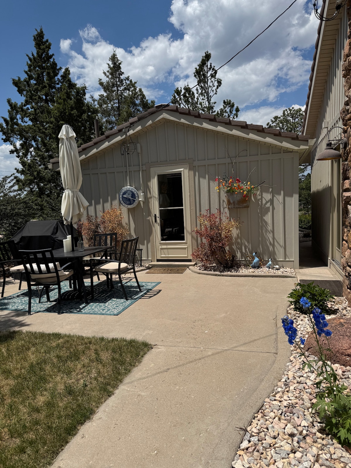 Esta propiedad fue construida solo para alojar a nuestros huéspedes. Esta suite es ideal para estancias largas. Se encuentra en un tranquilo callejón sin salida en una hermosa ubicación norte, justo al lado de la Interestatal 25. Esta es una suite totalmente independiente. Estacione en su entrada privada, introduzca el código de acceso y disfrute. Esta propiedad cuenta con un dormitorio principal con baño completo en suite y vestidor. Sala de estar de concepto abierto con sofá, TV, bar grande y cocina. Tranquilo patio y jardín al aire libre.