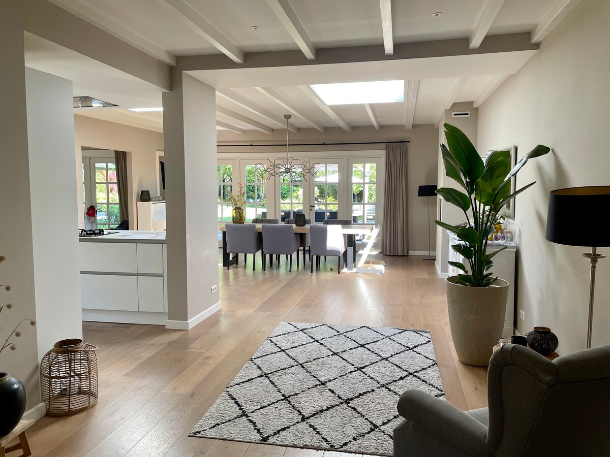 Preciosa casa familiar exclusiva en el centro del hermoso pueblo de Laren. A 25 minutos en auto de Ámsterdam y Utrecht. Gran jardín privado con muchas instalaciones para niños. Gran entorno con bosque y llanuras arenosas. Un lugar perfecto para andar en bicicleta (de montaña). Muchos restaurantes, tiendas y lugares encantadores que visitar. La casa es un lugar perfecto para familias con niños a las que les gusta un poco de privacidad, lujo, un lugar para relajarse y salir. Hay muchas instalaciones disponibles para entretenerte a ti y a los niños.
