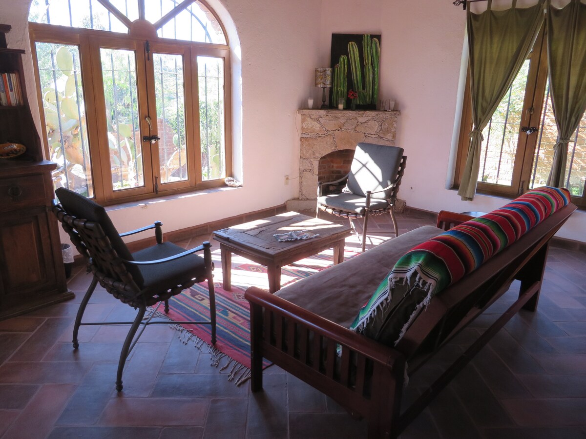 Surrounded by gorgeous cactus gardens, this adobe has 1 bedroom with a queen bed and full bath. A double futon in the Livingroom for extra guests and 1/2 bath is just outside the casita. The house is spacious and has Mexican decore. Several outdoor seating places to view mountains or sit by the outdoor bonfire area. Better weekly rates. Easy 3 block walk to centro.
