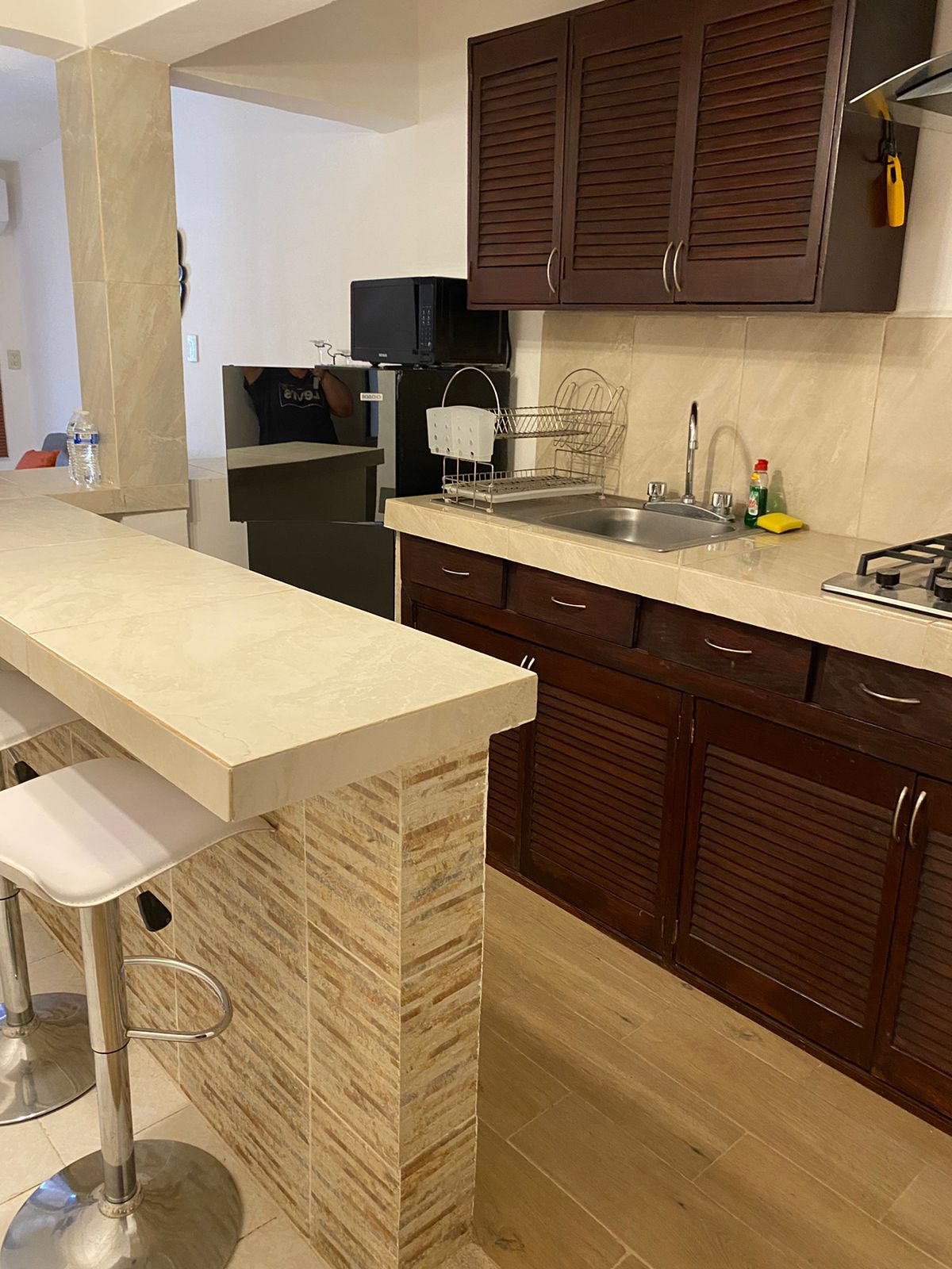 este departamento está diseñado para un espacio de tranquilidad y funcionalidad, ideal para ejecutivos o familias de 4 que vengan de trabajo o disfrutar días de descanso y que deseen tener todo los lugares turísticos con cercanía, como plazas comerciales y playas, este departamento está frente a una plaza comercial de mayor renombre PLAZA AMERICAS Y WORD TRADE CENTER , asi cómo a 3 calles de playas. Está climatizado y tiene lo necesario para tu comodidad PRIMER PISO, NO TIENE ESTACIONAMIENTO