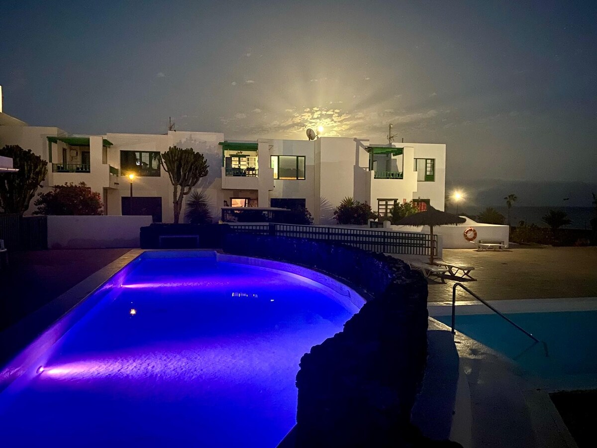 Coqueto bungalow de 2 dormitorios con piscina comunitaria y acceso directo al mar. El bungalow está recién renovado, con todas las comodidades y situado en una de las mejores zonas de Lanzarote. Lugar muy tranquilo, a menos de 5 minutos de la playa y de las zonas comerciales. Dispone de amplio salón muy luminoso, cocina totalmente equipada, y una decoración moderna. Terraza privada para disfrutar del buen tiempo de la isla.