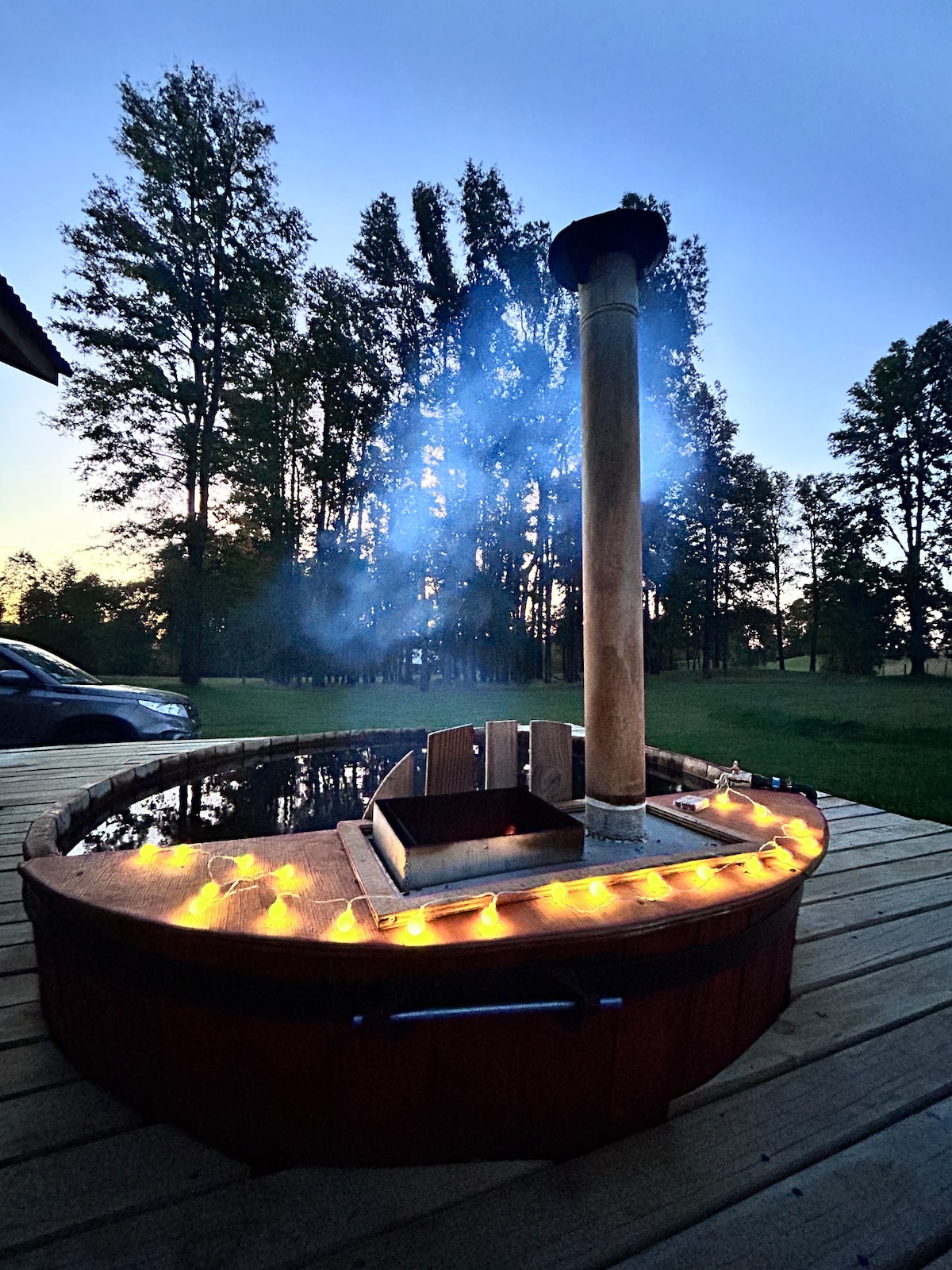 Cabaña ubicada en un campo en el Km 6 aprox de la ruta Vllca-Pucón, equipada para 4 huéspedes con sábanas, toallas, cocina con microondas, hervidor, refrigerador. Con combustión lenta, estufa eléctrica y calientacamas. Tv satelital Direct Tv. La tarifa incluye leña medio saco de leña por estadía de mayo a agosto. Hot tubs en los jardines del recinto con costo extra de $40.000 por 4 horas de uso. Se debe coordinar con un día de anticipación la reserva del Hot Tubs para su preparación.
