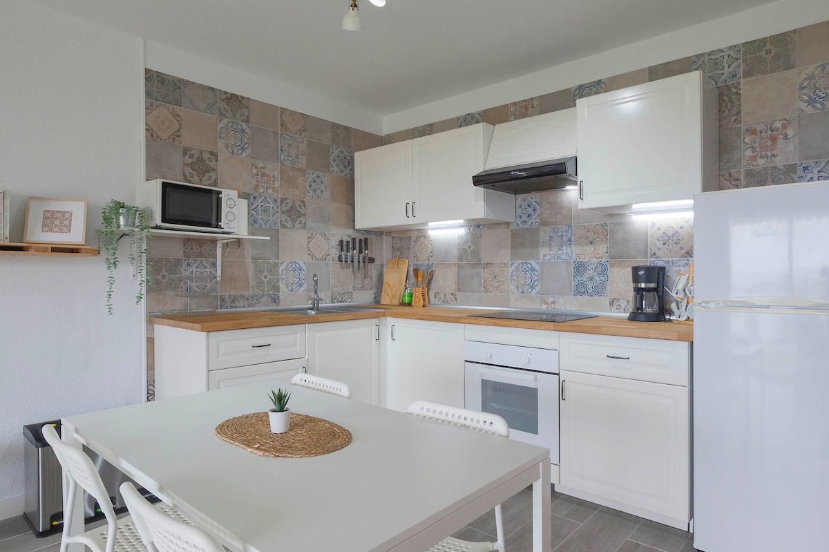 Estarás a dos minutos a pie de la Playa de las Vistas, desde el balcón vistas al mar y la playa . Tiene 47m2 bien distribuidos , Aire acondicionado, Smart TV 58", Internet fibra óptica 100Mb, Mesa de trabajo ordenador. Cocina completamente equipada: Nevera, Horno eléctrico, Microondas, Lavadora, Secadora, Nespresso, batidora, licuadora,etc Todo lo que necesitas para una estancia maravillosa! Dormitorio con aire acondicionado y baño con ducha efecto lluvia. Zona muy tranquila.