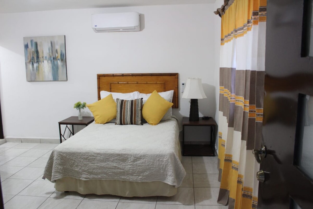 Acogedor loft en Cabo San Lucas, ideal para descansar después de un día de playa o aventura. Cuenta con entrada independiente, aire acondicionado, cocina equipada y espacio cómodo para hasta 4 huéspedes. Ubicado en zona residencial tranquila a 20 min del centro y playas. No cuenta con estacionamiento privado; el estacionamiento es en vía pública sujeto a disponibilidad.