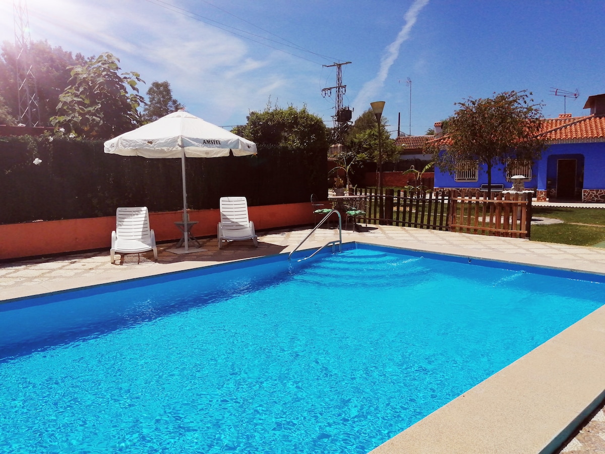 Hermosa Villa hasta 8 personas, ideal para familias y amigos, rodeada de naturaleza y a 20 minutos de Sevilla. Ubicación privilegiada al lado de un Parque Natural y a 2 km y 5 minutos en coche del Club de Golf. Hiking, ciclismo y a 2 minutos andando de supermercados y restaurantes. Zona de trabajo, Wifi por fibra, chimenea, calefacción,A/A, barbacoa, comedores interiores/ext. gran piscina privada delimitada para peques, jardín con palmeras y garage privado para varios coches.Mascotas wellcome!
