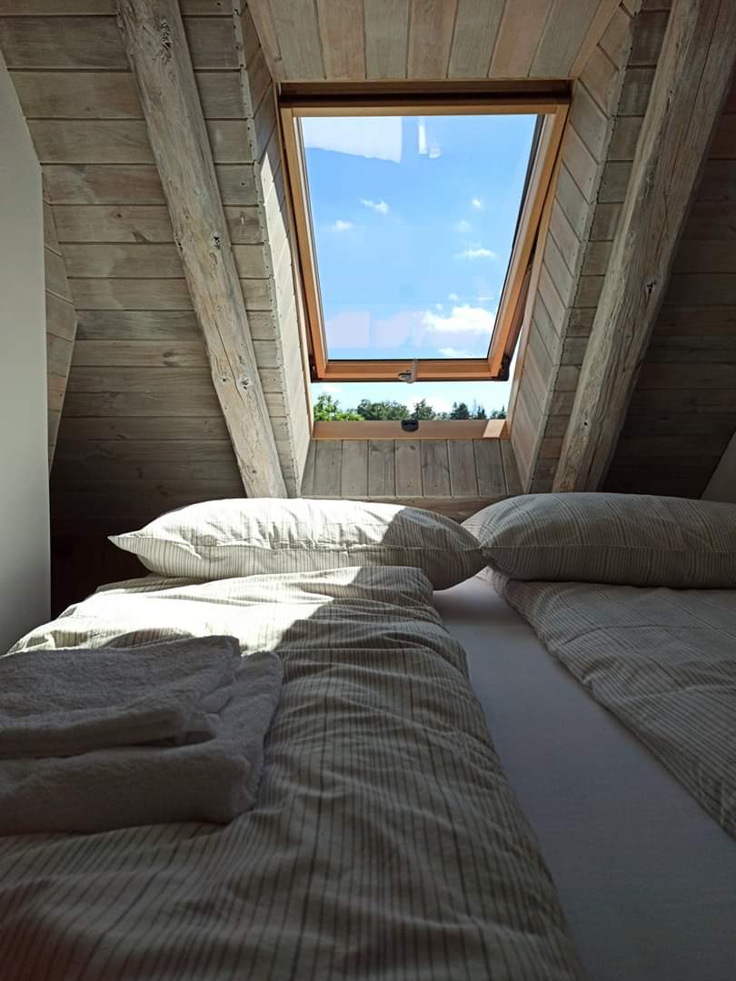Te ofrecemos una casa de madera con una vista relajante de las montañas del búho, desde la cama puedes admirar hermosas y románticas puestas de sol con una copa de buen vino en la mano. Los rayos cálidos del sol naciente pueden despertarte por la mañana. Usa la terraza, si tienes un poco de suerte, verás ciervos pasando, que tienen su oasis en un bosque cercano. Relájate en este espacio tranquilo y elegante. Pero estaría garantizado :)