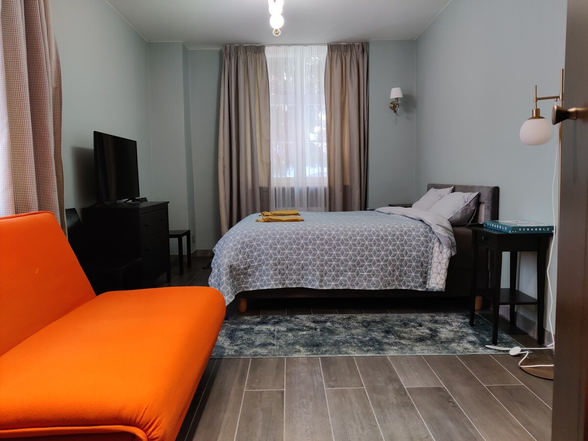 ¡nuevo! Acogedor apartamento estudio a poca distancia a pie de todo lo que puedas necesitar. Cama tamaño king (200x200) con colchón de alta calidad. Además, un solo sofá silla, para el tercer huésped. El departamento está ubicado en un edificio renovado en una de las calles principales de Riga. Muebles y electrodomésticos nuevos. Interior moderno. A 5 minutos del casco antiguo, estación central. La Ópera Nacional, teatros, museos, galerías de exposiciones, salas de conciertos están a poca distancia a pie.