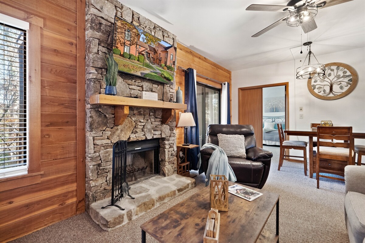 ¡Ven a relajarte en la montaña en este apartamento de dos dormitorios recién reformado! Este refugio de montaña es agradable para todos: adultos, familias, amigos o incluso para una escapada romántica. ¡Piscina comunitaria a poca distancia a pie y situada junto al campo de golf! Convenientemente ubicado a menos de 5 minutos del albergue principal y de las pistas de esquí. ¡El servicio de transporte gratuito te recogerá y dejará en el albergue! ¡LA ASOCIACIÓN DE PROPIETARIOS PROHÍBE EL USO DE LA CHIMENEA A LOS INQUILINOS! ¡Reserva ahora y disfruta de todo lo que ofrecen las montañas Laurel!