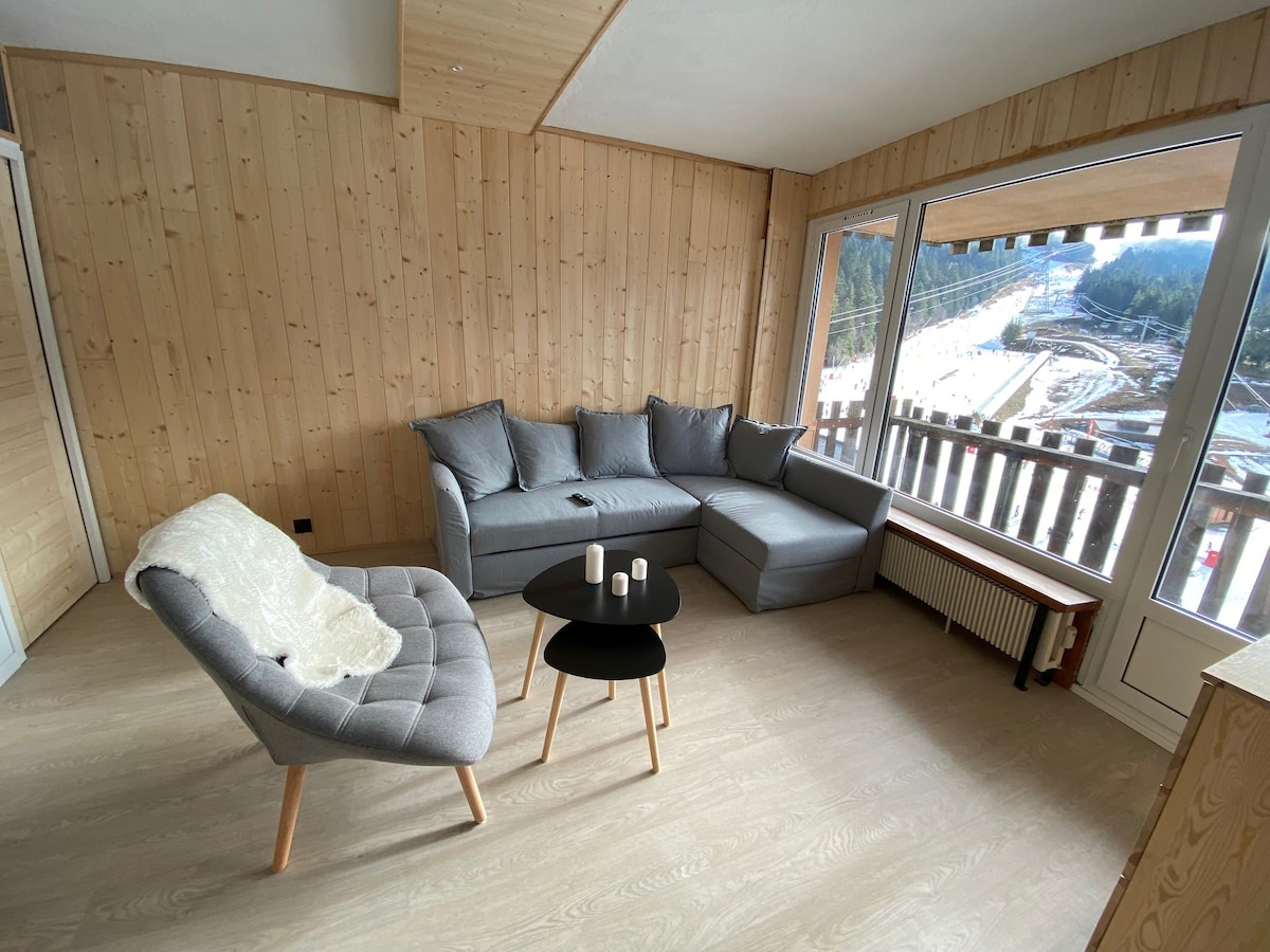 Un cocon chaleureux avec terrasse panoramique face aux volcans du Cantal, au Lioran. Idéal pour un séjour nature en couple, en famille ou entre amis, entre randonnées et paysages du Parc naturel régional des Volcans d’Auvergne. Séjour lumineux ouvert sur la terrasse avec table de repas extérieure, barbecue et chiliennes, cuisine équipée, une chambre confortable et couchages pour 6 personnes. Un cocon cosy pour se retrouver et profiter de la montagne face aux volcans du Cantal.