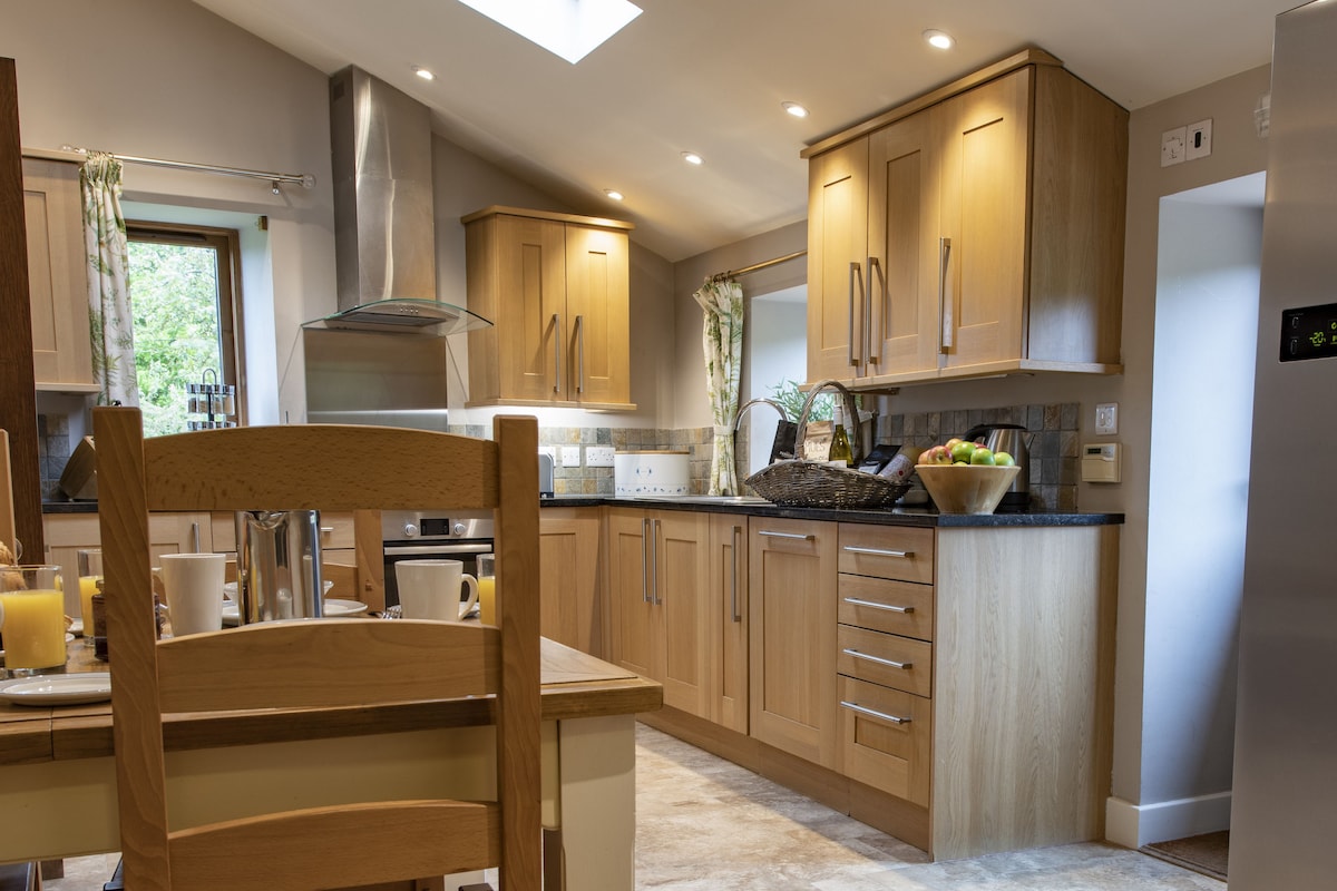 Oak Barn se encuentra en el Distrito de los Lagos. El acceso a los lagos está a solo 20 minutos en coche. Totalmente accesible para todos, para que puedas relajarte y recargar energías. Esta acogedora casa de 3 dormitorios y 2 baños tiene capacidad para un máximo de 6 huéspedes con un sofá cama en la galería. Disfruta de las hermosas vistas panorámicas con un ventanal panorámico de vidrio del suelo al techo, situado en una campiña idílica con la oportunidad de disfrutar de un paseo mientras respiras el aire del campo. Desconecta de la rutina en este alojamiento único y relajante.
