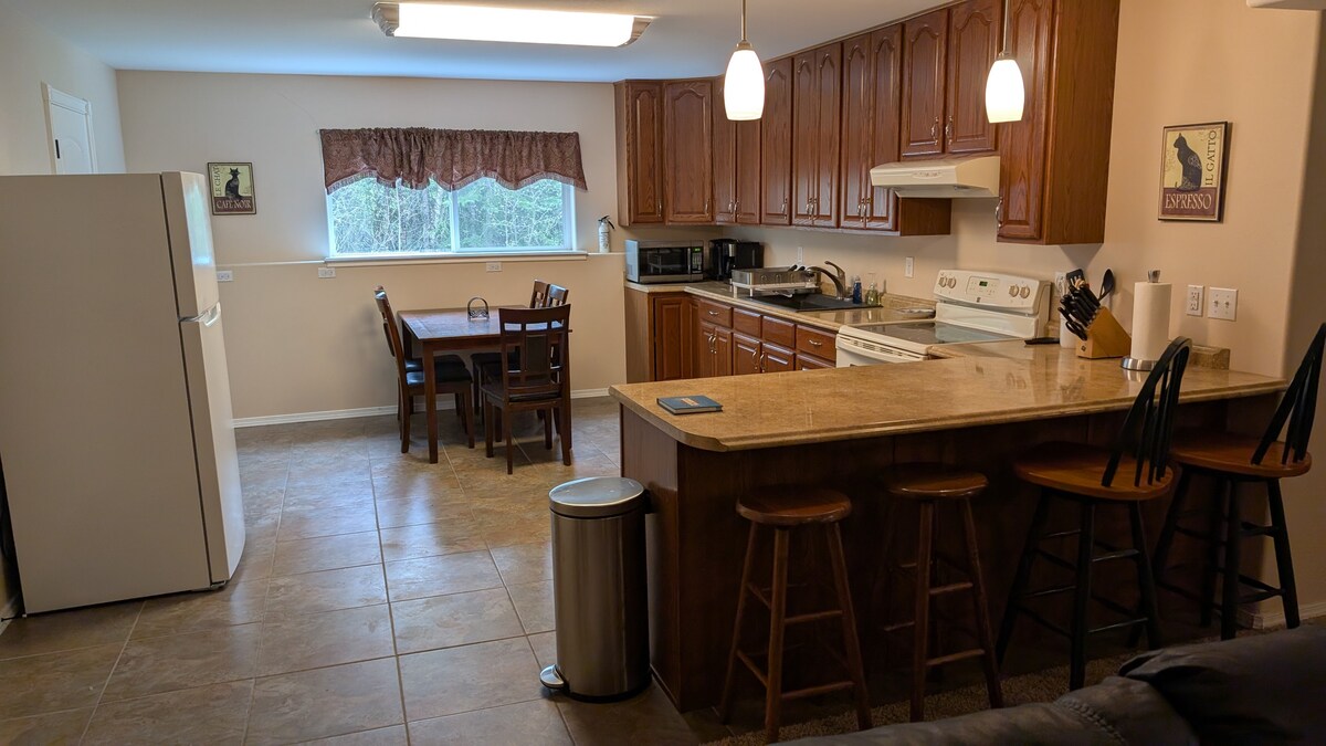 NO cobramos extra por limpieza, perros, personas o impuestos. Nos gusta saber si hay niños/perros. El espacio está sobre un garaje (500 pies cuadrados). Estilo estudio, lugar abierto y alegre. A solo 2 millas de la autopista, buena carretera hasta la puerta. Tiene 2 pequeñas cubiertas. Paisaje relajante, debido a la remodelación, la chimenea privada no está disponible. Puedes hacer ejercicio caminando hasta el lago. Muelle. Tenemos colimbos, águilas y algunos otros animales salvajes. En un lago de 17 millas. Tiene truchas, así que trae una caña. Gran escapada en pareja. Si tienes preguntas, solo tienes que decírmelo.