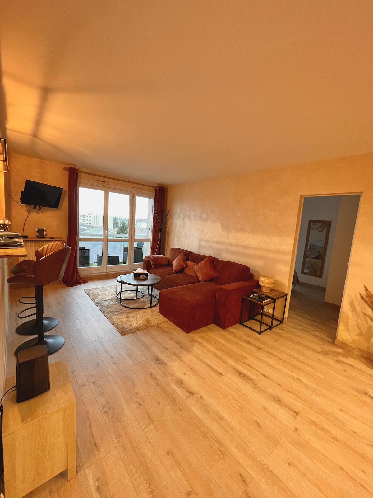Bonito apartamento renovado por completo en 2022, moderno y acogedor situado en el centro de la ciudad de Gonesse y cerca de todos los servicios (panadería, bancos, estanco, tienda de comestibles, pizzería...) con capacidad para 4 personas como máximo. Nuestro alojamiento está situado en el primer piso en una antigua granja totalmente renovada. Ideal para profesionales en viaje de negocios, parejas o amigos que deseen pasar una estancia agradable en un lugar tranquilo y silencioso.
