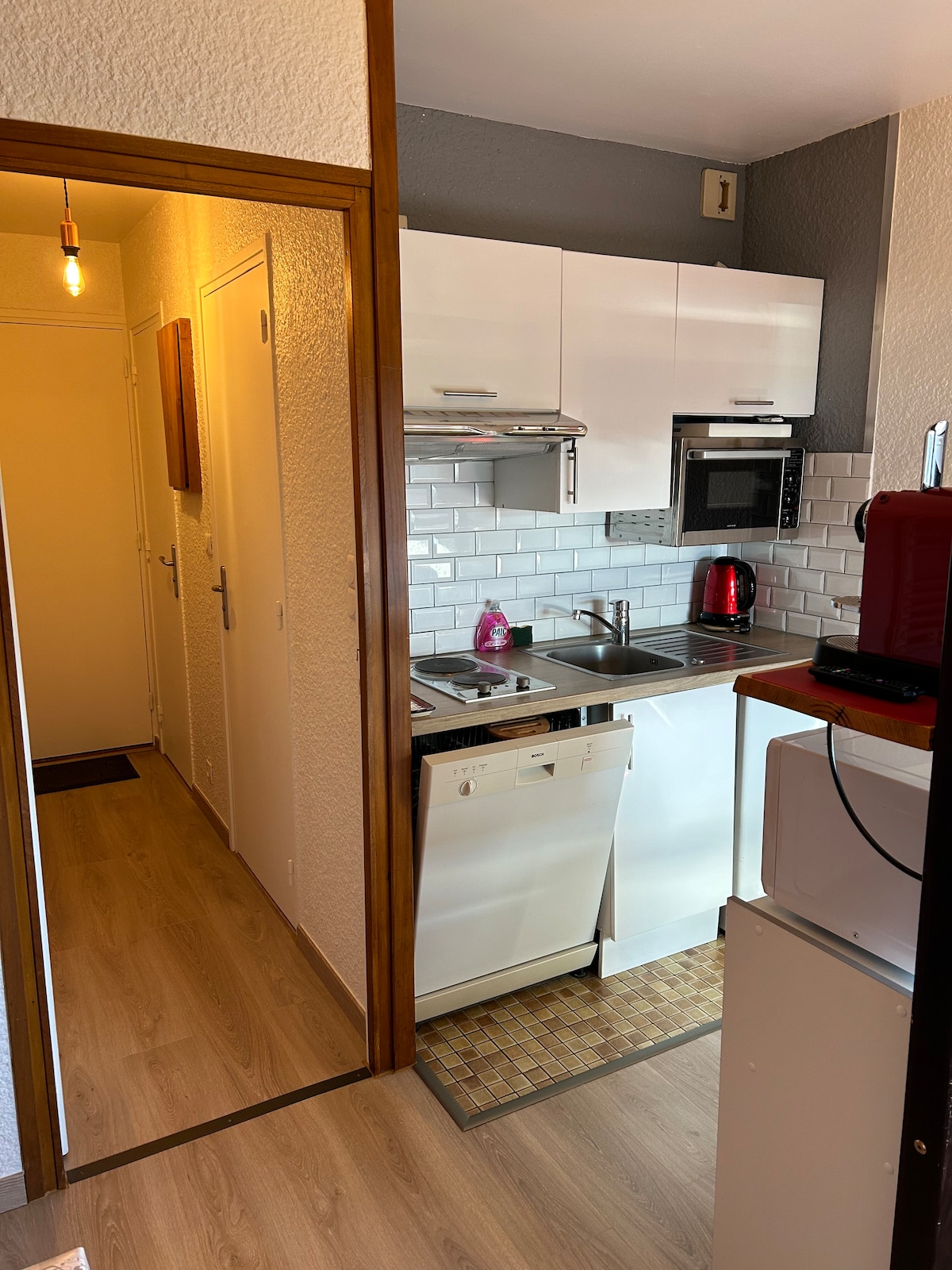 Estudio de 12 m2 al pie de las pistas en pleno centro de la estación (residencia Côte Brune, a 3 minutos a pie del Jandri Express). Sala de estar con sofá cama de 130 x 190 (edredón de 200 x 200 + 2 almohadas) y televisor de pantalla plana, cuarto de baño con ducha, lavabo e inodoro. Cocina equipada, microondas, horno, cafetera Senseo. Armario de esquís. Cerca de todos los comercios. Urbanización con código digital. La limpieza estándar del apartamento está incluida. No se proporcionan sábanas ni toallas de baño.