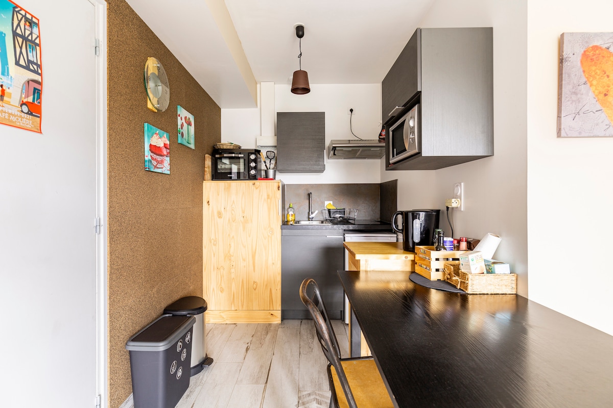 À 3 km des plages et du centre-ville, à 1 km de la côte côté estuaire • 🛏️ 2 chambres : 1 au RDC lit 140x190, 1 mezzanine fermée : 1 lit 140x190 + 1 lit simple sous pente • 🛋️ Pièce de vie : cuisine équipée, salon avec canapé et TV • ☕️ Machine à café • 🌐 Wifi gratuit • 🧺 Machine à laver • 🌿 Terrasse côté rue, quartier paisible et calme ⚠️ IMPORTANT : logement loué sans forfait ménage. Merci de le rendre propre (poubelles sorties, sols, cuisine et SDB). non-respect = 80€ de frais.