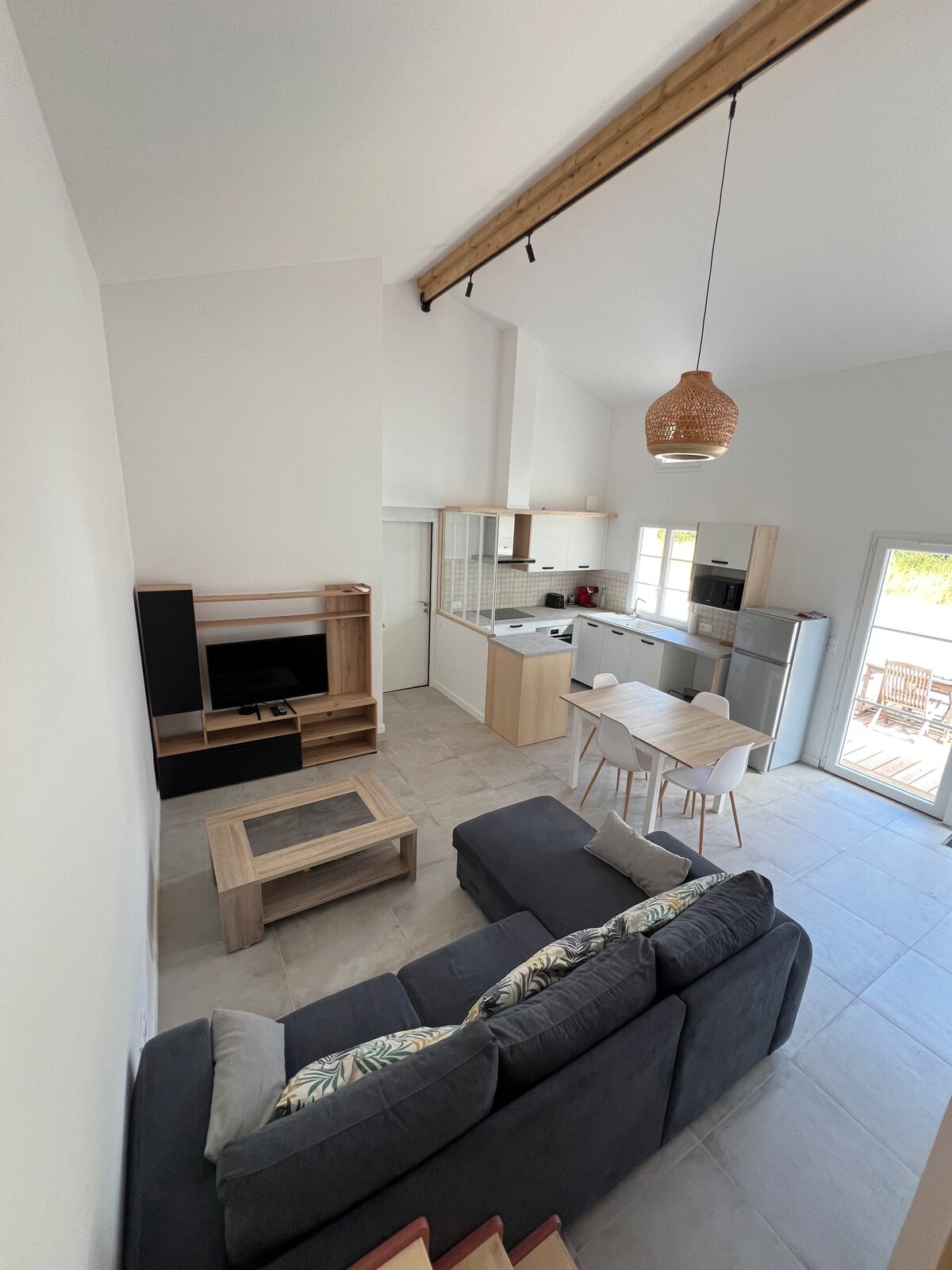 ¡Muy bonita casa de 110 M² totalmente renovada, con hermosas salas de estar, luminosa, y que mantiene un cierto frescor durante el calor intenso! Podrá pasar un buen rato en la terraza exterior equipada con un toldo y totalmente cerrada con paredes, sin vecinos. Arriba, 3 hermosas habitaciones, incluyendo una suite principal con todas las comodidades que le harán pasar muy buenas noches en un lugar muy tranquilo. El lugar es ideal para relajarse y descansar.