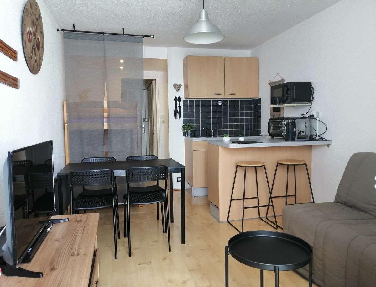 Residencia VANGUARD, Estudio de 22 m² con todas las comodidades con balcón de 3 m² (mesa pequeña, tumbona) en el séptimo piso, orientado al sur y con vistas a las pistas, cerca de la piscina. Armario de esquí privado cerrado con llave en la planta baja de la residencia, las pistas están al pie de la residencia Estudio totalmente equipado Cocina con todo el material necesario 1 televisor 1 sofá cama 140 x 190 litera 90X190 Edredones, almohadas y mantas (no se proporcionan sábanas ni toallas de baño)