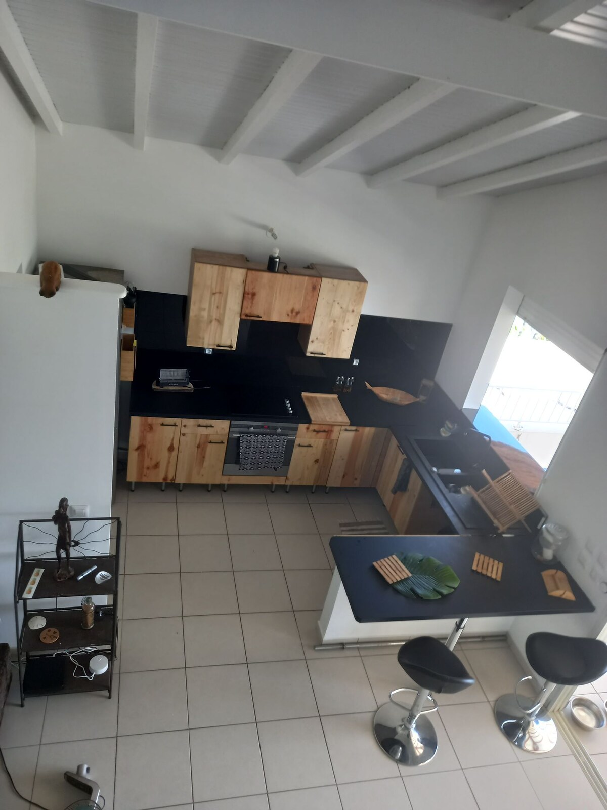 LA VILLA COCONICE La Villa CocoNice de 150 m² + una terraza muy grande de 220 m2 y una cubierta de 80 m2, está idealmente situada en una colina, tranquila y con una magnífica vista del mar Caribe, las montañas y la bahía de Fort de France. Esta villa consta de 6 habitaciones distribuidas en 2 niveles y puede alojar hasta 8 viajeros.