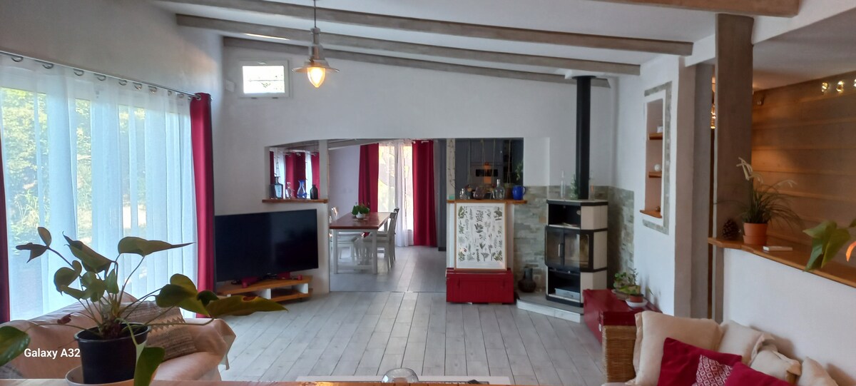 Casa de campo de 140 m2 con todas las comodidades y de planta baja, muy agradable para vivir. Gran terraza con barbacoa, 2 hermosas pérgolas equipadas ociosas, jardín muy grande arbolado sin vecinos ni cerca. Piscina privada segura y ducha al aire libre bien fresca o caliente según su preferencia. Gran salón, cocina equipada, 3 dormitorios grandes, 1 baño con bañera , WC, ducha . 2º WC separado. 3 TV, aire acondicionado, Wifi Fibra. El lugar es bucólico, ¡venga a reponer fuerzas!