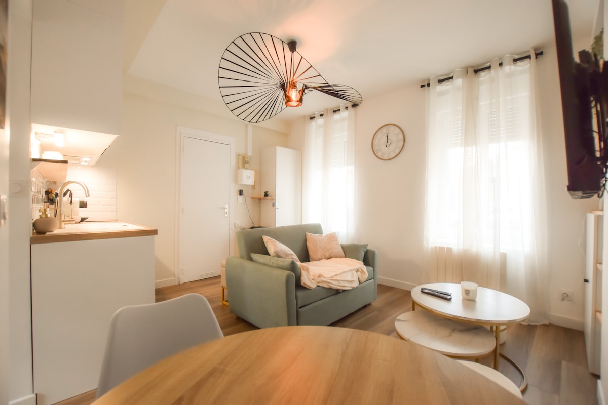 Relájese en este alojamiento tranquilo y elegante. Venga a dejar sus maletas a la salida del tren, antes de salir a descubrir la ciudad, alojamiento pequeño por su tamaño pero grande por su sentido de la hospitalidad, hasta 3 para dormir y picar en un ambiente de parquet molduras y tranquilo en este barrio residencial y burgués de la ciudad. 16 m2 de felicidad. {Posibilidad de alquilar para una persona con instalación de un pequeño escritorio con silla de oficina para un período de prácticas} Se puede ir en bicicleta.