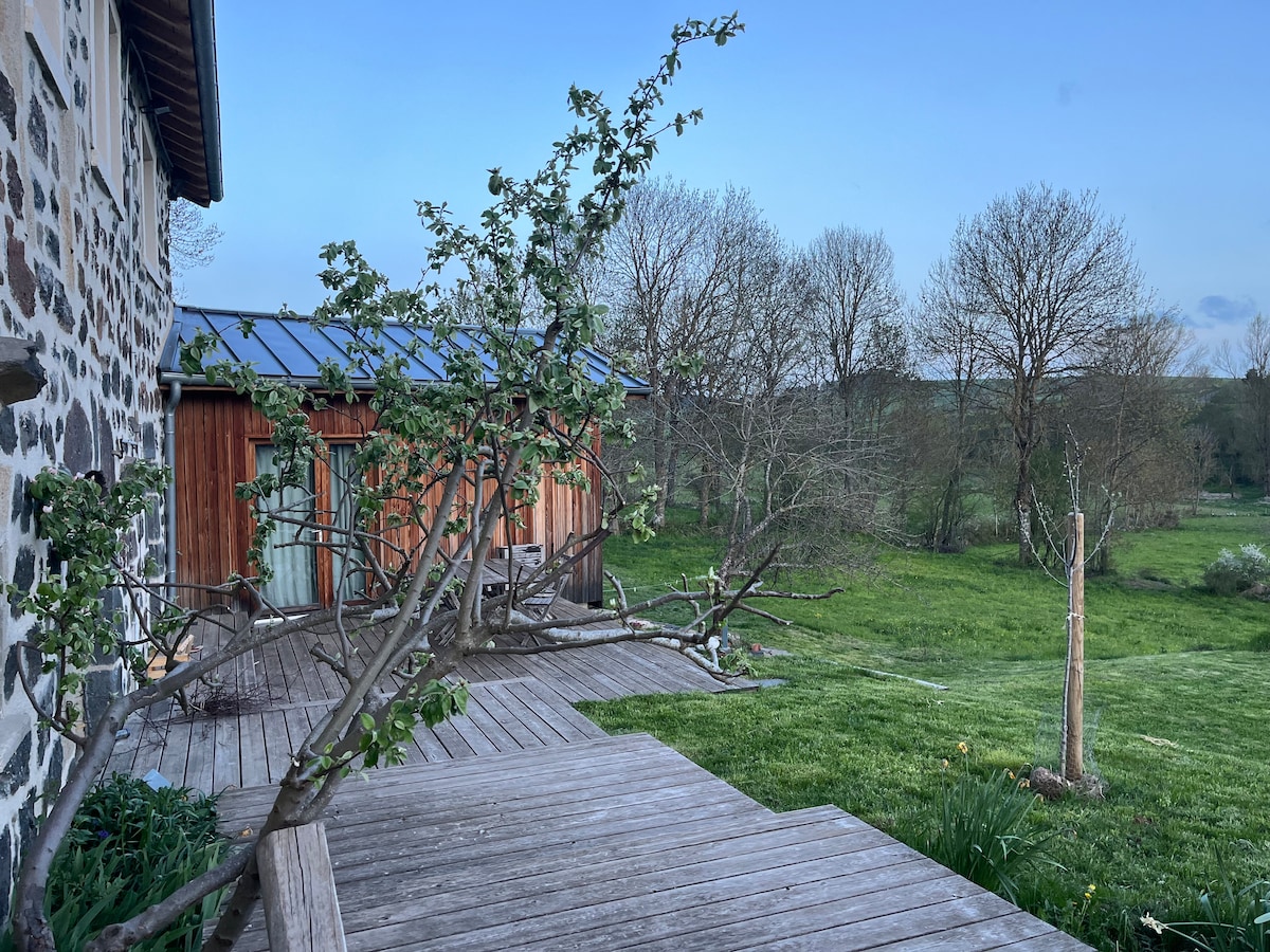 ¿Necesita desconectar en la naturaleza, de confort acogedor junto al fuego? ¡Esta antigua casita de piedra y madera, rústica y acogedora está hecha para usted! El jacuzzi nórdico privado y la sauna panorámica están a su disposición durante toda su estancia. Con su chimenea, su terraza de lauzes, su tranquilidad: el lugar ideal para hacer una verdadera pausa tanto en verano como en invierno. ¡Cocooning en pareja, actividades en la naturaleza en el bosque y en las mesetas de Auvernia! ¡Time to relax!