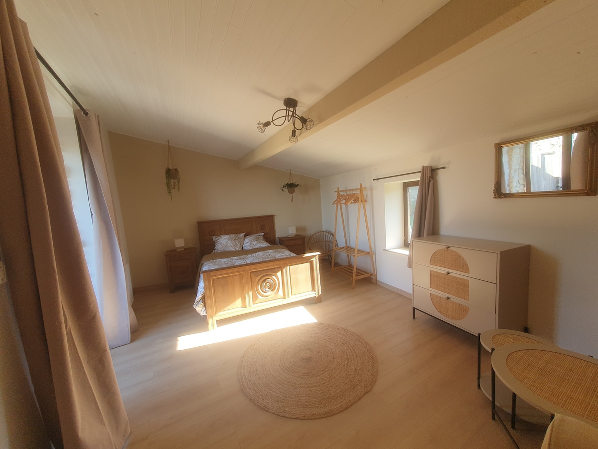 Installez-vous confortablement dans cette charmante maison tout confort et entièrement équipée, elle est idéale pour un séjour reposant en solo ou en couple. Profitez de toutes les commodités à votre disposition. Literie de qualité, coin salon, wifi, linge de maison fourni — tout est pensé pour que vous vous sentiez chez vous. À deux pas, découvrez le caractère pittoresque du Puy-Notre-Dame, village de charme.