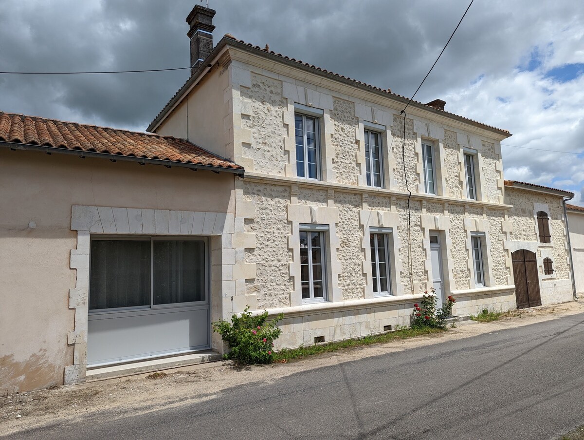 ¡A solo dos minutos de pequeños comercios (bar, estanco, farmacia, panadería, hortalero) y pistas de petanca! Alojamiento nuevo en una gran casa en el campo con un gran terreno y aparcamiento privado, paseos a pie o en bicicleta le esperan. Ideal para tratamientos termales en Jonzac, viajes de negocios, familias y turistas. Estancia con todas las comodidades: Aire acondicionado en todas las habitaciones, wifi, cocina completa, ropa de cama de gama hotelera, ducha a ras de suelo.