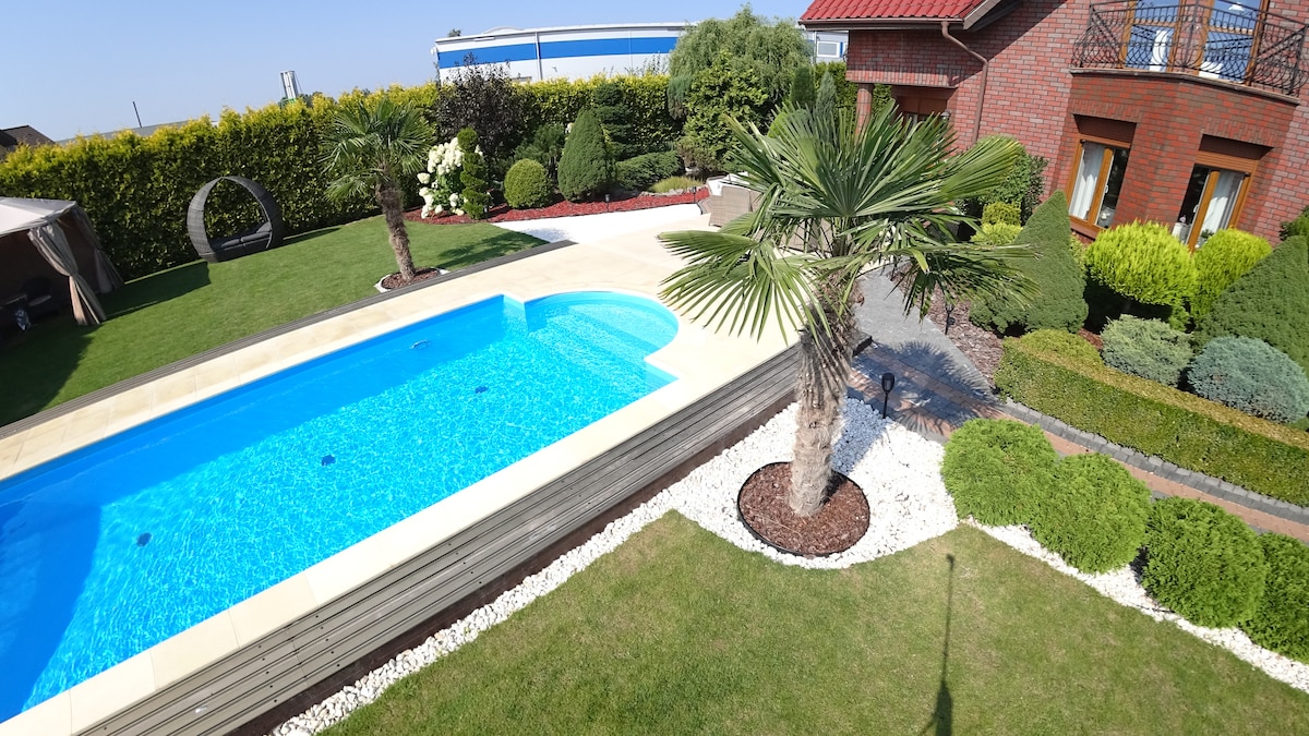 Un gran lugar para hospedarse para 2-15 personas. EL HÁBITAT BIESZKOWICE es una casa residencial de 3 pisos durante todo el año con un área de 160 m2 para uso exclusivo con atracciones al aire libre: piscina, jacuzzi, bañera de hidromasaje (algunas solo están abiertas en la temporada de verano). La casa tiene 6 dormitorios y te permite alojarte en una familia más grande o con amigos. Fuera del edificio principal, hay otra instalación en la parcela: es una zona de entretenimiento al aire libre cubierta y climatizada, muy apreciada por nuestros huéspedes.