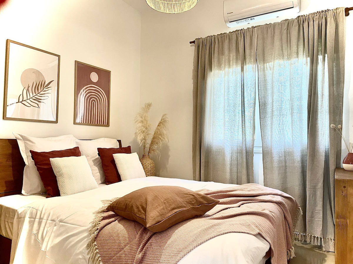 Reúnete en un acogedor departamento de estilo bohemio. Perfecto para un grupo de amigos o una familia. Luego toma tus toallas de playa y dirígete a la playa. Hay un divertido ambiente bohemio en este espacio, con su interior luminoso y espacioso, detalles terrosos y muebles elegantes. Una base ideal para descubrir la vida nocturna, la cocina local y las playas. Nuevo apartamento de LUJO de 2 dormitorios completo (3/2022) cerca del centro de Nidri y la playa, ubicación tranquila y céntrica, fácil acceso a las áreas más hermosas de la isla.
