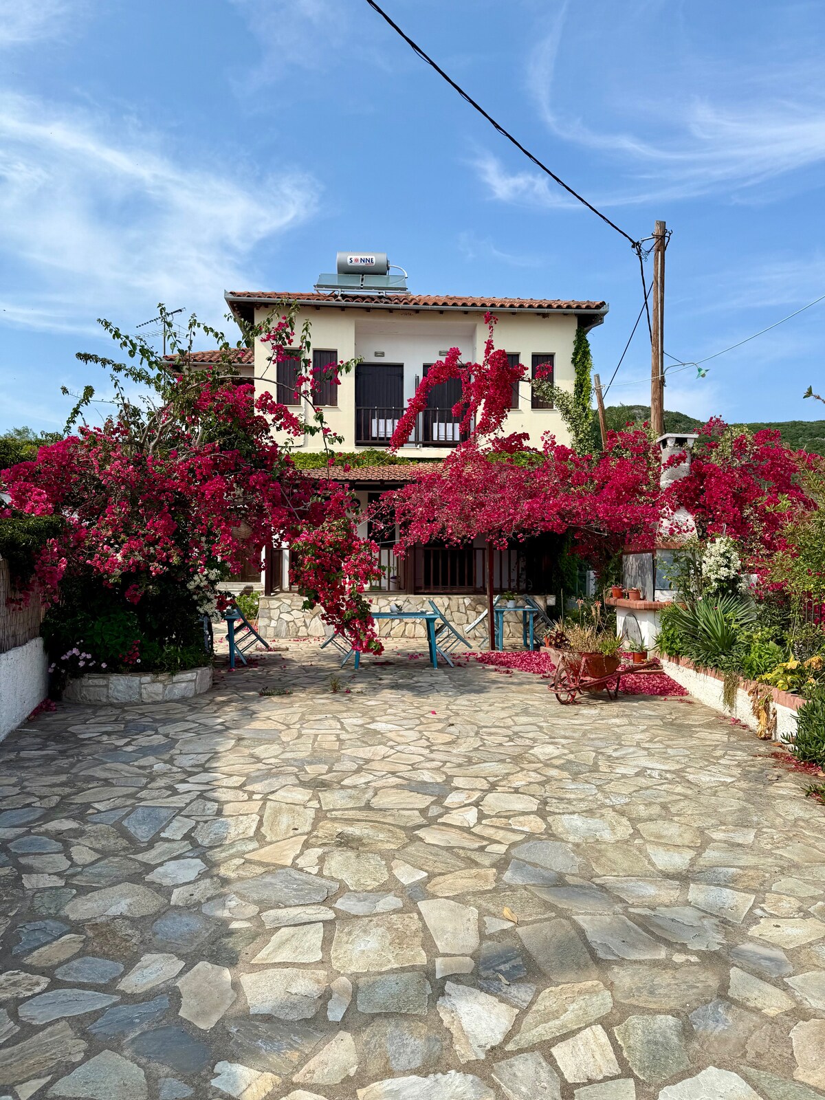 Relájate frente a la apacible puesta de sol y disfruta de las aguas cristalinas del golfo de Pagasético, en el pintoresco pueblo pesquero de Kalamos. La casa «Agriolefka» puede ofrecer una estancia cómoda en el primer piso de un edificio de piedra reformado, a solo un minuto de la playa. El lugar es único como base para explorar toda la región, a solo 10 minutos en coche del pueblo principal de Argalasti y a menos de media hora de las playas más llamativas del golfo y el Egeo.