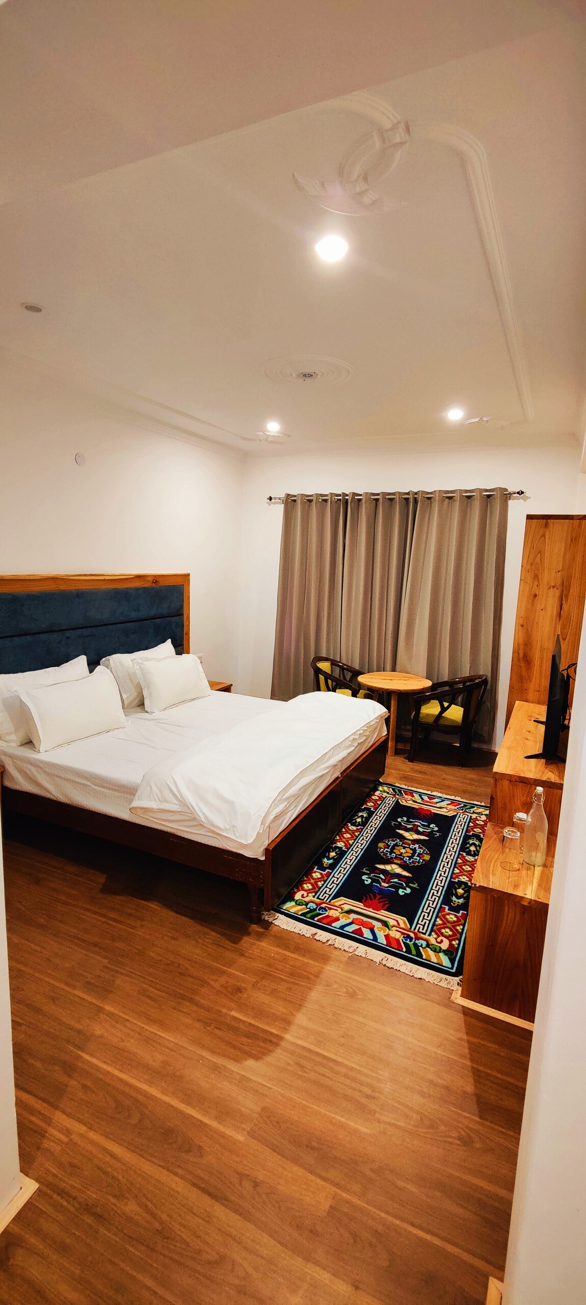 Leh Hotel Horzay is located on P.Namgyal road/ old road in the heart of Leh. It is 4-5 kms from the airport. The property is off the main road nestled between willows. Our property is a vintage property built in the earlys 80's. The interiors have been regularly renovated to ensure maximum comfort to our guests. The guest rooms are spacious and cozy. The rooms have poster beds or king size beds made of teak wood with comfortable bedding. The rooms are made in a way to get maximum natural light.