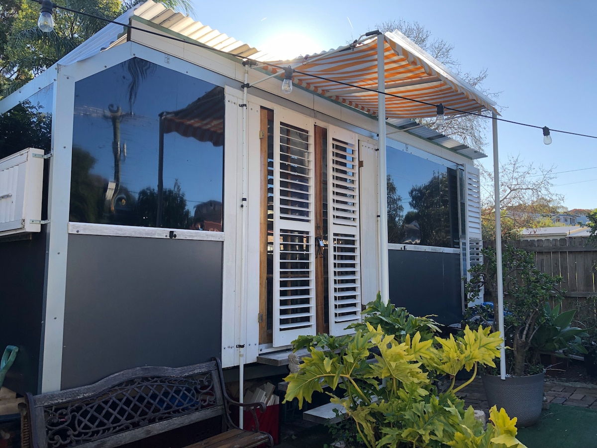 Nuestra cabaña es espaciosa y luminosa. Ofrece una cama tamaño queen, un cómodo salón, un armario empotrado, una pequeña cocina (con nevera bar, microondas, hervidor de agua, tostadora), baño, zona de estudio, aire acondicionado, wifi y un televisor inteligente (Netflix, Disney, Stan y Prime). Tiene suelos de madera, una terraza de madera, asientos al aire libre y ventanas con mosquiteras. Hay un fácil acceso por una entrada compartida para ir y venir a tu antojo. Tenemos dos hijos, un perro cruzado de caniche y 2 gatos, a los que puedes echar un vistazo si tienes suerte.