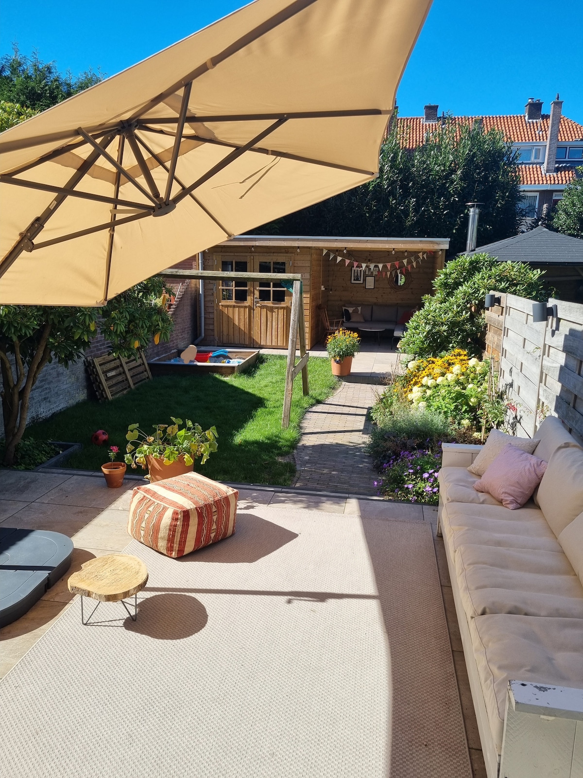 ¡Ubicación muy céntrica! Una casa familiar luminosa y espaciosa en un barrio urbano tranquilo. La casa tiene 3 plantas y 6 dormitorios cómodos. Gran centro comercial a poca distancia a pie. Aparcamiento gratuito, transporte público cercano. ¡Cocina de lujo, baño agradable y jardín orientado al sur! En 30 minutos estarás en La Haya, Scheveningen, Delft, Utrecht, Leiden o Róterdam. Ámsterdam está a solo 45 minutos. Centro comercial (supermercado abierto todos los días de 8:00 a 22:00) y parque/zona de juegos a poca distancia a pie.