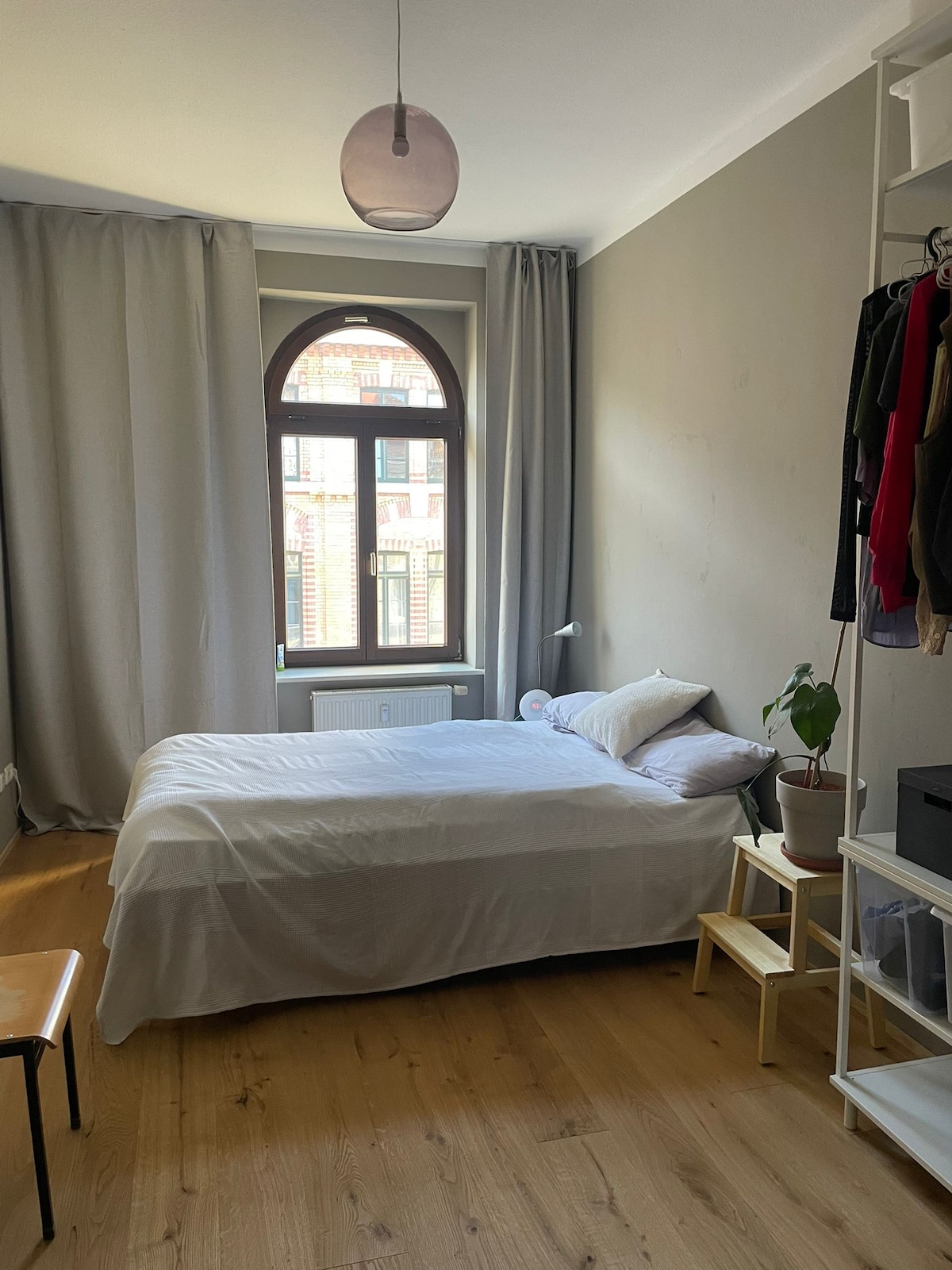 Desde este alojamiento céntrico en uno de los distritos de Gründerzeit más hermosos de Europa, estarás en todos los lugares importantes de la ciudad en muy poco tiempo. La conexión es excelente, el parque y el bosque de la llanura de inundación están a pocos metros de distancia. La carretera está ocupada, pero en la parte trasera se abre un tranquilo patio verde. El balcón, la cocina y el dormitorio están orientados allí. El baño y la cocina se comparten con un compañero de piso que vive en la otra habitación.