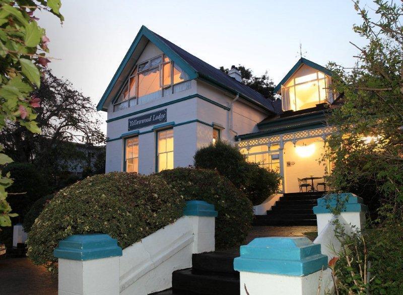 Panoramic view of old town and lagoon. Business travellers will love the freedom of no loadshedding and evening meals on their private deck. Walking distance to centre of town, Knysna Quays and lagoon. Positioned against the forest in a quiet cul-de-sac, a few blocks above the N2.