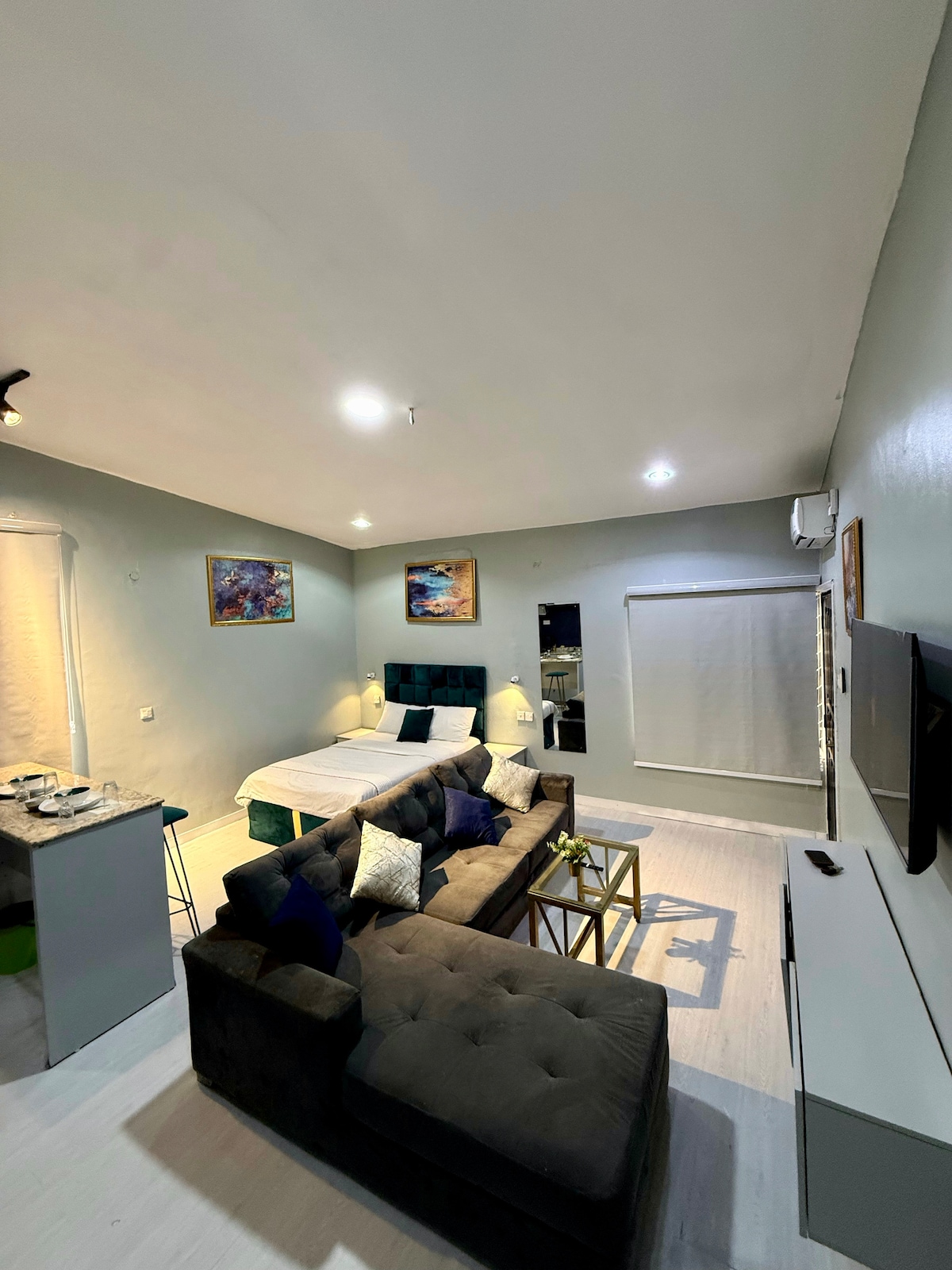 Welcome to Studio Haven, a cozy urban retreat in the heart of the city! This stylish studio apartment blends modern comfort with warm, inviting vibes. Enjoy a plush bed, soft linens, and a compact yet fully equipped kitchenette. The living area features a smart TV and free Wi-Fi, perfect for relaxing or working. Steps from vibrant cafes, shops, and transit, this haven offers the perfect base for your city adventure right in the heart of Lekki phase 1