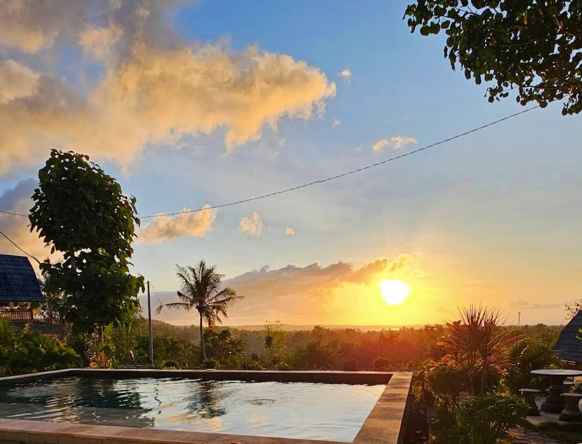 This villa is located in the southern part of the island, 18 km from Sampalan Harbor and 22 km from Banjar Nyuh Harbor. It's nestled in a small hilltop village surrounded by natural scenery. Its tranquil location is perfect for those seeking a peaceful retreat. The villa offers views of the ocean and green hills. You can also enjoy the sunset in the evening. There are four separate bedrooms for your group's private use. Complimentary breakfast is provided.