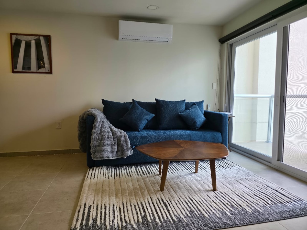 Departamento tipo loft totalmente equipado para gozar de una estadía realmente placentera y como en casa, diseño muy original y acogedor, una amplia terraza para tomar el sol y tener una rica tarde, ubicada cerca de cines, súper,farmacia y tienda de abarrotes frente al departamento, una zona tranquila de la ciudad, el lugar ideal para tener horas de descanso y/o trabajar sin el bullicio de estar en medio de la ciudad.