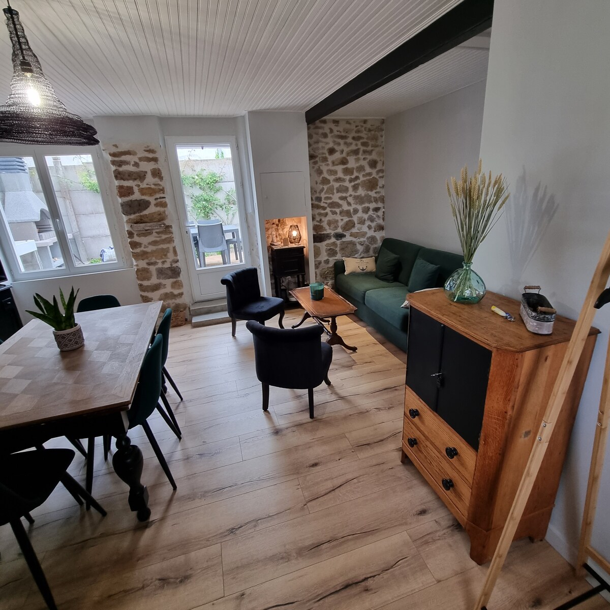 Bienvenue à la maison de Julie ! Un séjour ressourcement en bord de mer, accessible en train (1h de Nantes) et sans nécessité de voiture sur place, pour encore mieux déconnecter… Nous vous accueillons au rez de chaussée d'une demeure de caractère du 17ème siècle, située à 10mn à pied de tout : l'océan, les marchés, les commerces, les restaurants et terrasses… Pierres, bois, matières naturelles et couleurs choisies vous accompagneront pour un décor cocooning à souhait.
