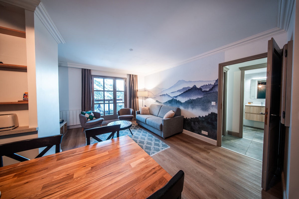 Con una exitosa mezcla de mineral y madera vieja, este apartamento reinterpreta con estilo el diseño del chalet saboyano. Un verdadero himno al estilo de vida, todo está pensado para disfrutar de los beneficios de una estancia en la montaña. Puntos fuertes: apartamento de lujo totalmente equipado, impresionantes vistas del Mont Blanc, acceso a las pistas de esquí a pie, zona de bienestar con piscina al aire libre, jacuzzi y sauna, gimnasio, numerosas actividades gratuitas en el pueblo Colección Five Peaks