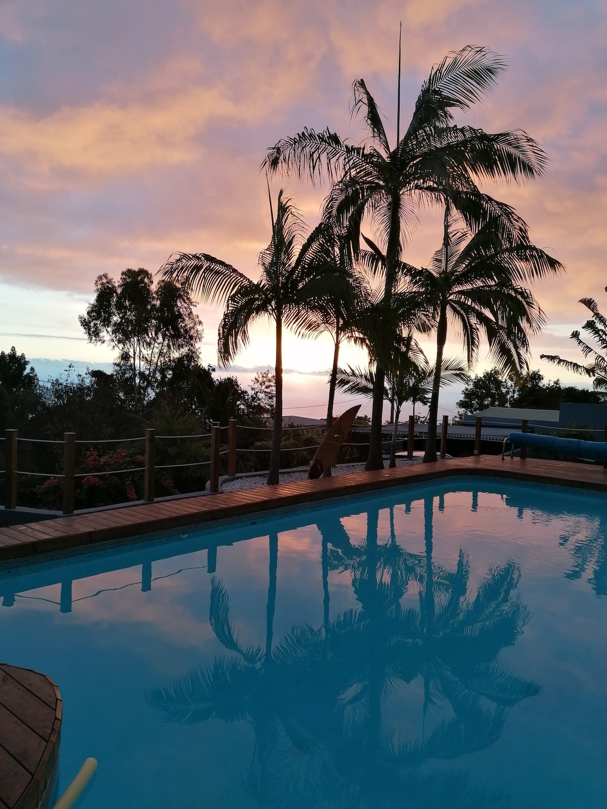 Etwas oberhalb von Etang-Salé, zwischen Zuckerrohrfeldern und kreolischen Nachbarn, liegt dieses neue Haus im marokkanischen und balinesischen Stil. Vom großen Pool über einen tropischen Garten mit mehr als 10 verschiedenen Palmen und mehreren Sonnenterrassen bis hin zur hochwertigen Einbauküche ist alles vorhanden, was den Urlaub angenehm macht. Nach 30 Jahren Großstadtleben am Berliner Kurfürstendamm haben wir hier einen Ort für alle Sinne geschaffen.
