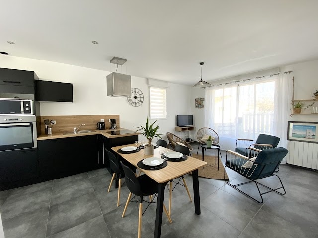 PROS: Se proporcionan sábanas, Wifi, lavavajillas, lavadora, cerradura conectada (llegada autónoma las 24 horas). Apartamento de 31 m² con terraza de 10 m² y impresionantes vistas al océano desde el tercer piso. Ubicación privilegiada en el corazón del terraplén: restaurantes, bares de playa, salones de té y snacks al pie del edificio.