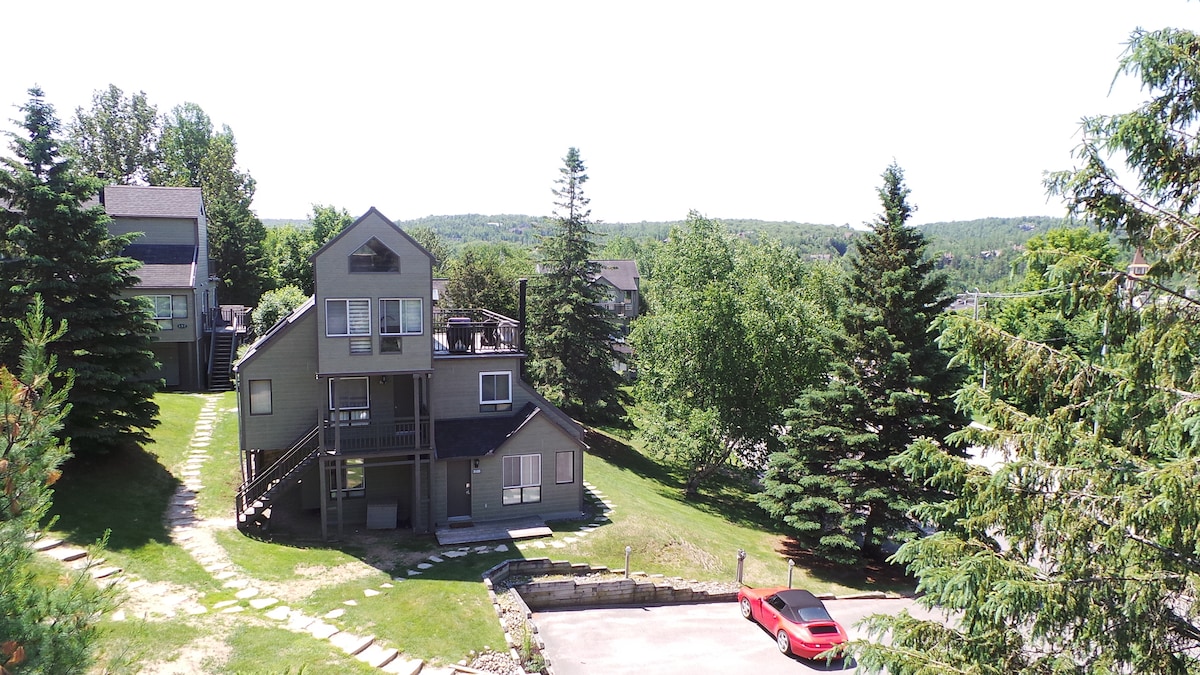 ¡Esquí dentro/fuera en el sendero Plateau, transporte al pueblo, chimenea, suelos climatizados y bañera de hidromasaje! ¡Ideales para escapadas durante todo el año! En el complejo Plateau y a 10 minutos a pie de Pedestrian Village. El complejo tiene una pista de hielo en invierno y una piscina en temporada. Ubicación privada y tranquila con la capacidad de caminar y dar paseos por la naturaleza. Chimenea real, unidad de aire acondicionado de la sala de estar y vistas increíbles desde la terraza trasera. Autobús gratuito desde el complejo de apartamentos hasta Pedestrian Village (el horario varía). Apartamento tranquilo y acogedor.