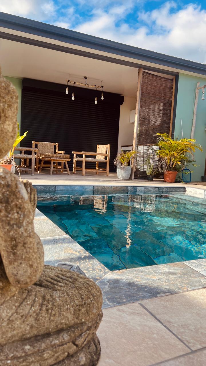 Bienvenido a nuestro bungalow ubicado en un entorno tranquilo y verde, situado a 5 minutos del aeropuerto y a 10 minutos de las hermosas playas. Este nido incluye una habitación con aire acondicionado, un baño, un aseo independiente y una cocina equipada. Disfrute de momentos de relajación junto a su piscina con bandeja flotante, tumbonas y una zona de comedor. Situado en el centro para explorar el norte y el sur de la isla, nuestro bungalow es el punto de partida ideal para sus aventuras tropicales.