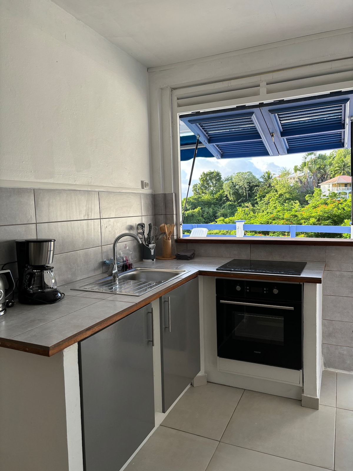 Escape criollo con vistas al mar en la ensenada del burro A dos pasos de la playa (6 minutos a pie), disfrute de una terraza con puesta de sol, un dormitorio con aire acondicionado (cama grande queen size), una cocina equipada y la tranquilidad del lugar. Cerca de restaurantes, panadería, tiendas, servicio de transporte marítimo. ¡Perfecto para disfrutar de la isla con los pies en el agua! Estacionamiento gratuito yseguro Sofá cama de matrimonio con colchón, Ropa de cama incluida, Wifi gratuito Deje las maletas, respire, está en Martinica.