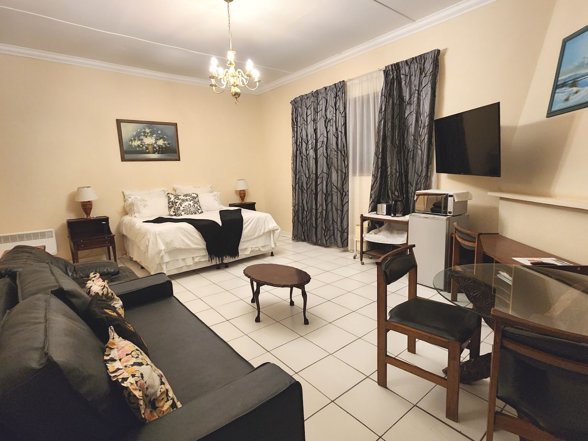 Solar-powered, your private suite is 1 of 3, side-by-side in the garden courtyard of our 1917 Cape Dutch heritage home. Expect safe gated parking, a quality mattress and bedding (all suites), block-out curtains, an en-suite shower, Netflix, free WiFi, a USB plug, a kitchenette with a small fridge, microwave, kettle, a patio area, and a shared barbeque area. You are free to enjoy the garden and outside areas, which include a barbeque courtyard.